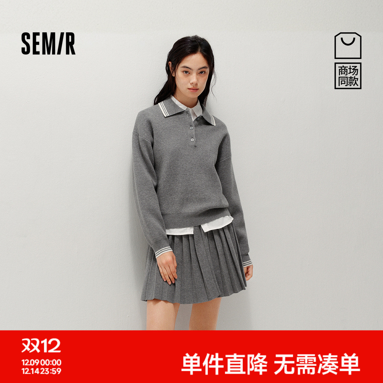 商场同款|森马套装女冬撞色polo衫百褶短裙2025新款学院风两件套