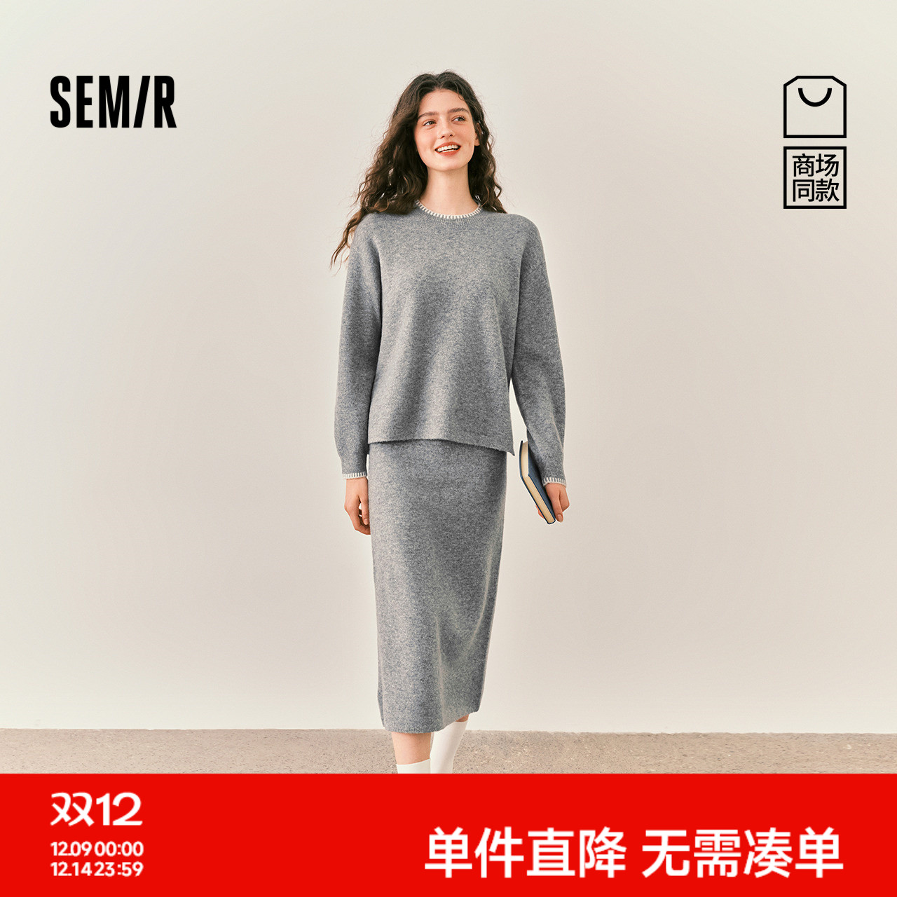 商场同款|森柔森马套装女冬撞色开叉毛衣直筒长裙2025新款两件套