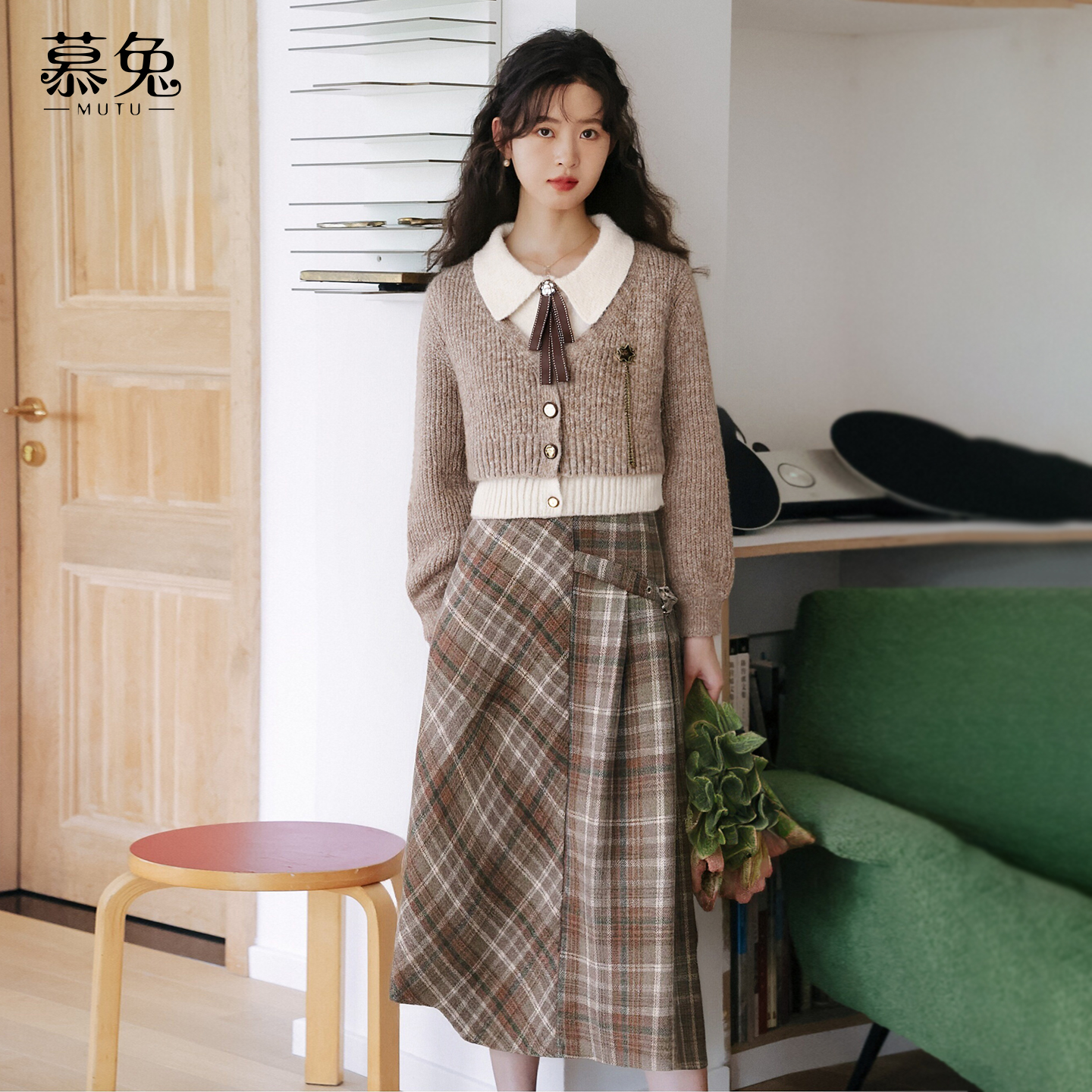 慕兔假两件毛衣不规则半身裙两件套女2025冬季新款韩系气质套装裙