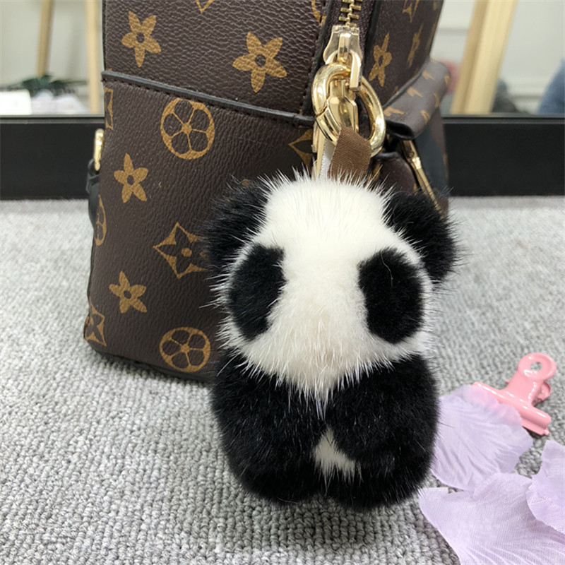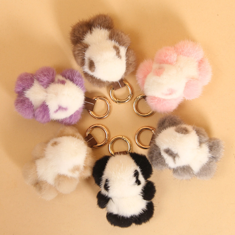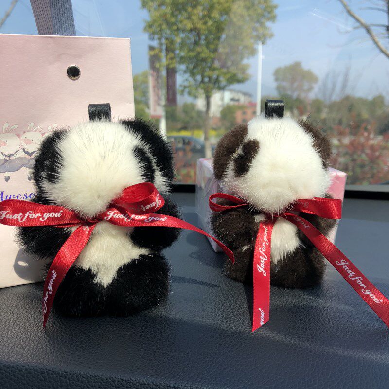 进口水貂毛小熊猫皮草挂件装死挂饰兔包包手机挂件饰品汽车钥匙扣