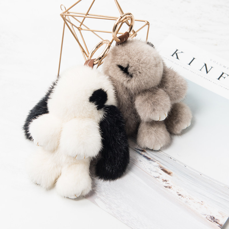 进口水貂毛小熊猫皮草挂件装死挂饰兔包包挂件兔子饰品汽车钥匙扣