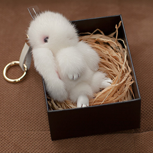 进口水貂毛小兔子装死毛绒兔迷你玉兔挂饰手机包包汽车钥匙扣挂件