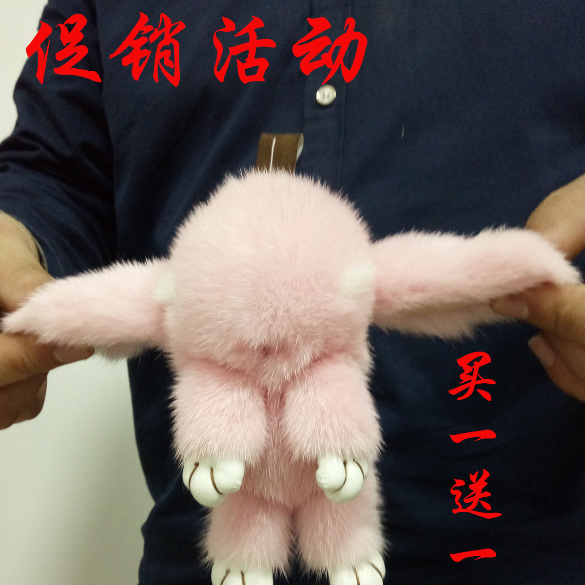 进口水貂毛小兔子挂件超大毛绒钥匙扣高档礼品包包挂饰萌萌兔挂件