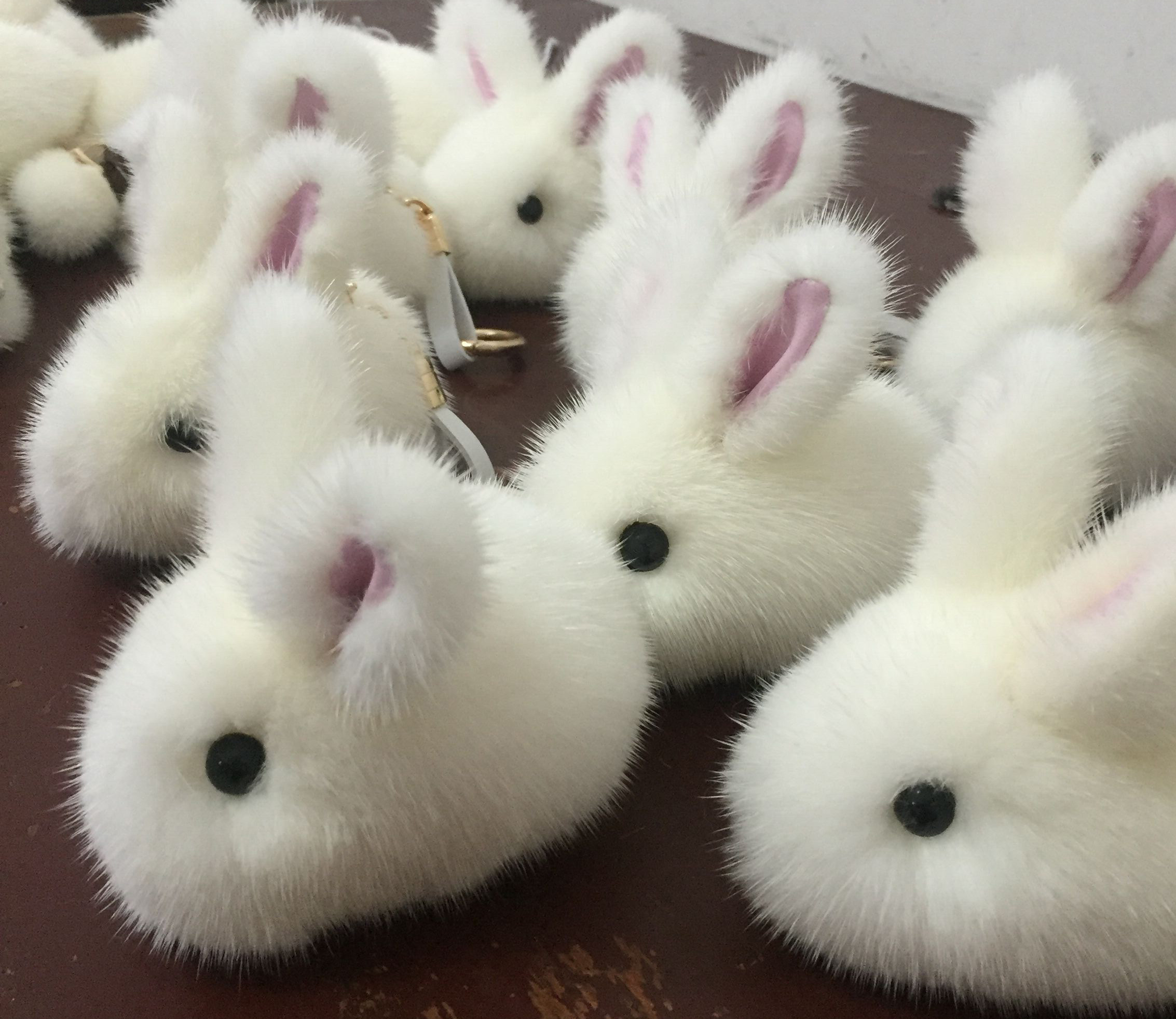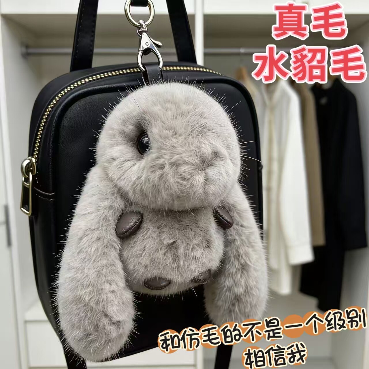 哥本哈根进口真水貂毛兔子皮草挂件纯手工萌兔兔挂链配包汽车挂饰