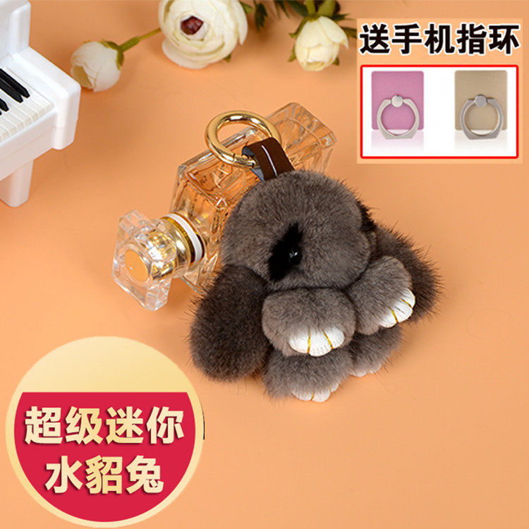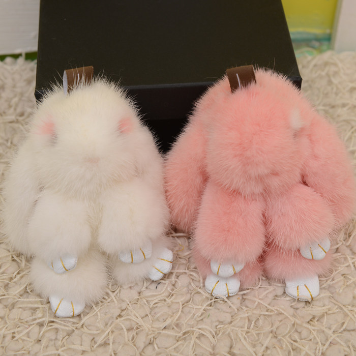 进口水貂毛小兔子挂件可爱毛绒迷你钥匙扣公仔高档萌萌兔包包挂饰