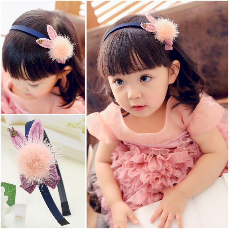 秋冬新款韩国进口儿童发箍水貂毛兔耳朵头箍蝴蝶结发饰头饰有带齿
