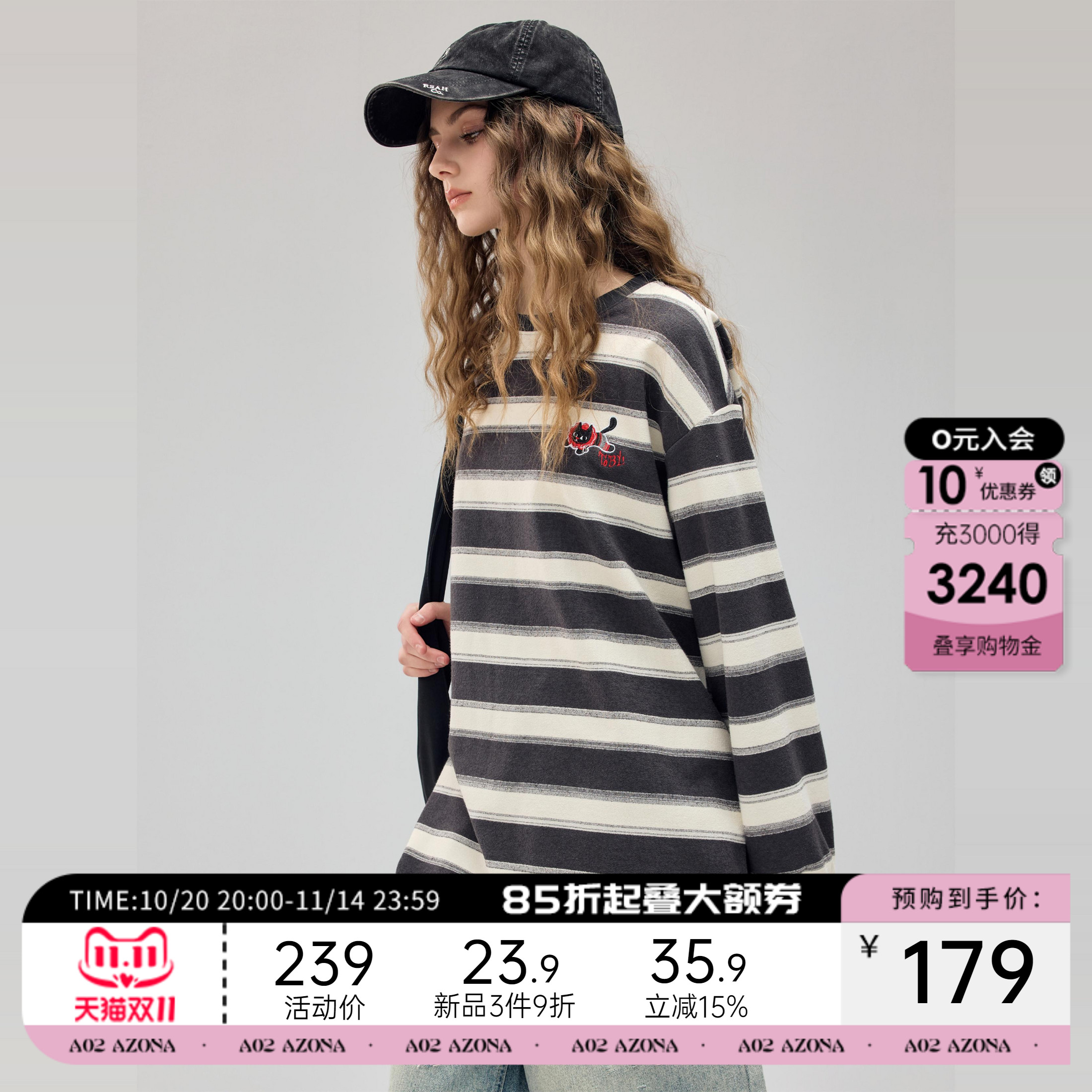 a02黑猫系列宽松圆领条纹卫衣女2025新款秋季清新通勤穿搭上衣