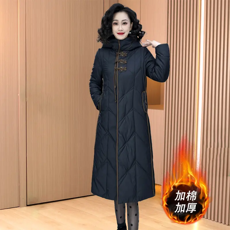 妈妈冬装羽绒棉服中长款修身显瘦中老年女人棉衣新中式国风连帽款