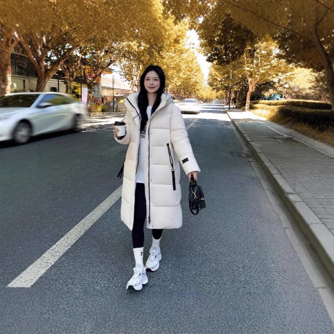 爆款休闲羽绒服女2025冬季新款中长款过膝宽松棉衣加厚保暖外套