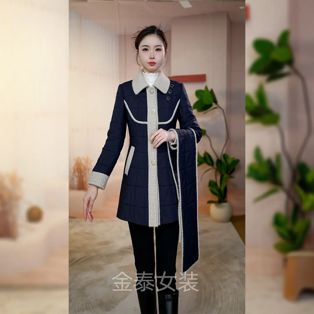 - 西装领长款棉衣女
