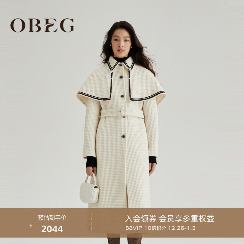 OBEG欧碧倩披肩斗篷毛呢外套女冬季高端洋气羊毛大衣10464171