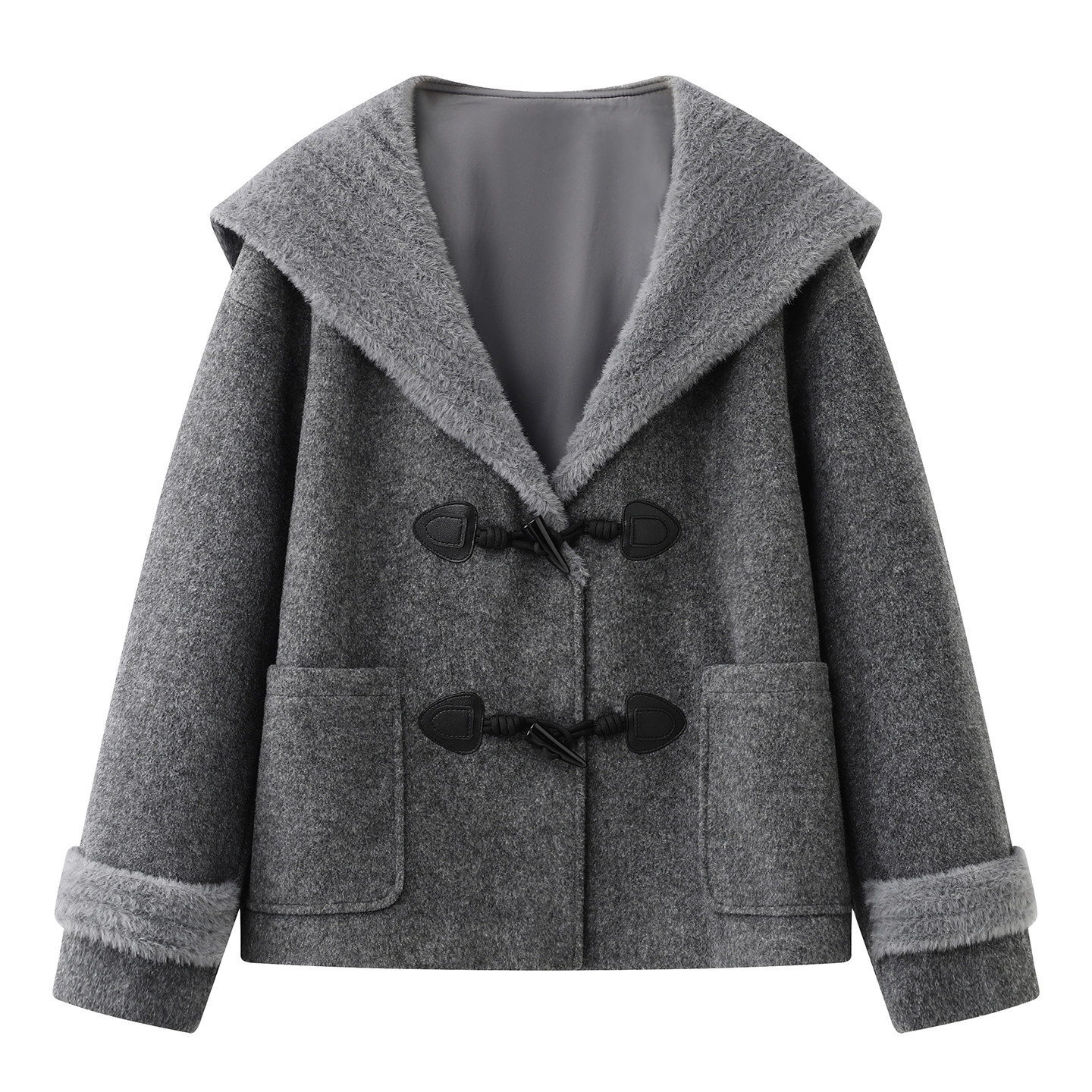 - 毛呢外套 宽松连帽