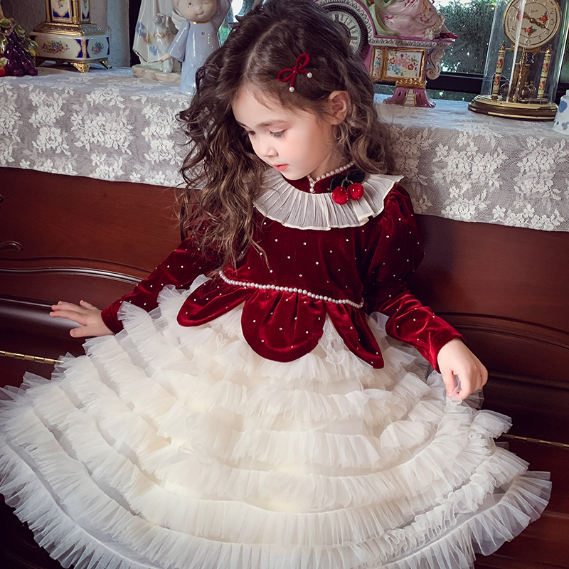女童裙子秋冬周岁女宝宝礼服儿童公主裙红色小女孩连衣裙洋气冬装