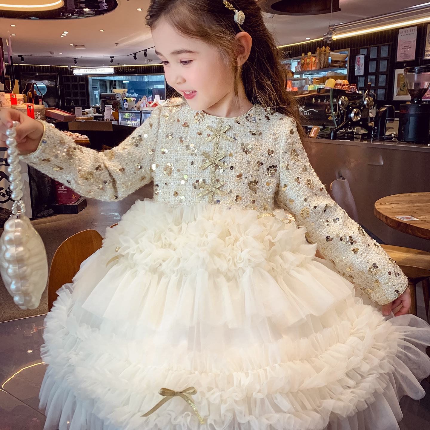女童公主裙冬装儿童富家千金感生日连衣裙洋气高端精致宴会礼服裙