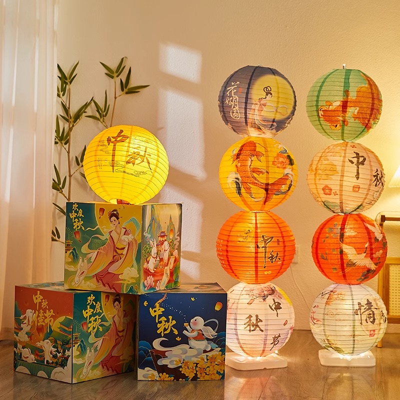 中秋节场景氛围布置灯笼立柱活动装饰中国风道具商场店铺橱窗摆件