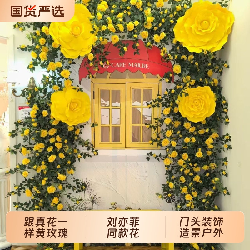 巨型黄色玫瑰假花藤条藤蔓仿真花墙背景橱窗摆件美陈网红打卡造景