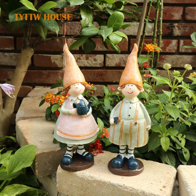 乡村风情尖帽子花园情侣娃娃森林庭院阳台儿童房婚庆装饰橱窗摆件