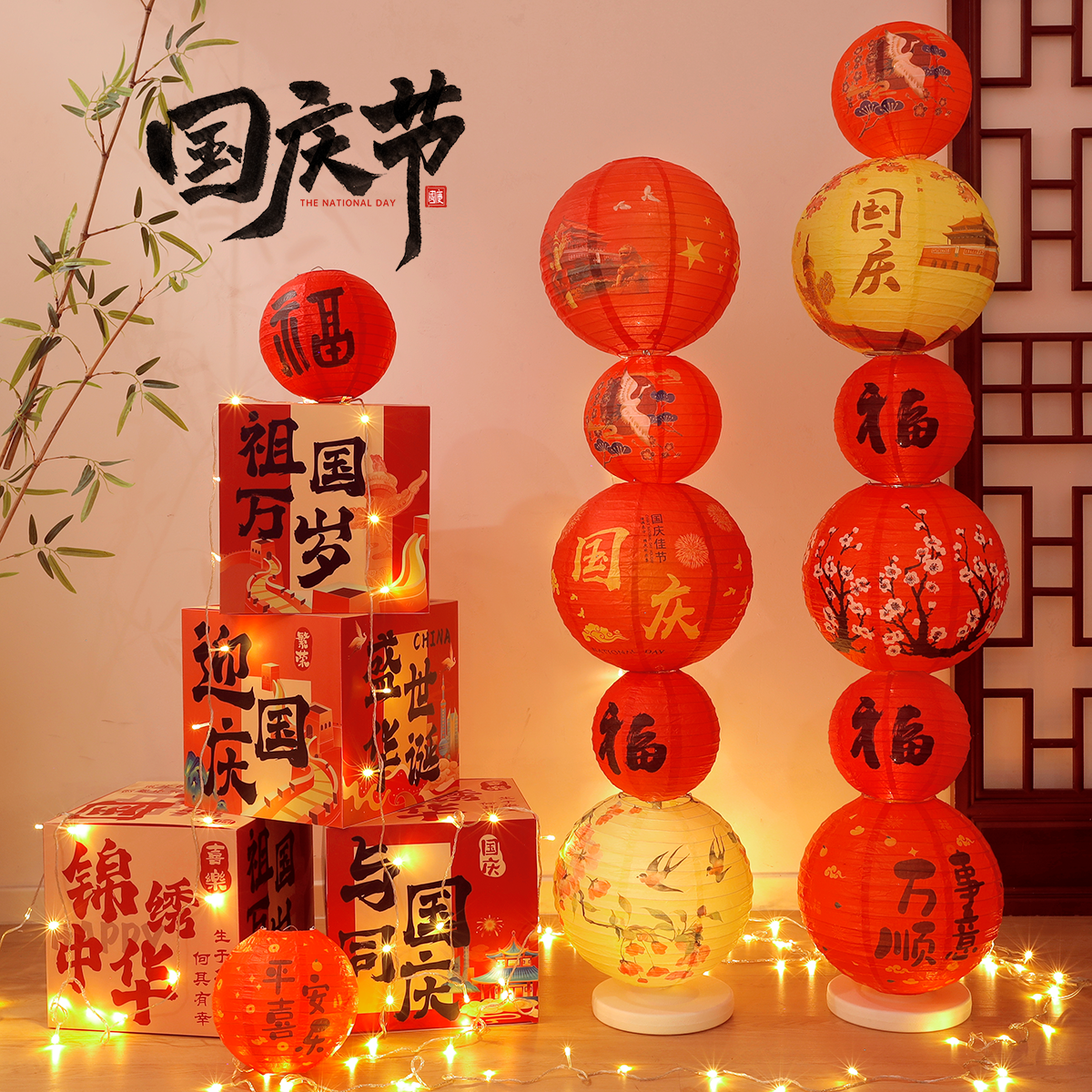 国庆节场景氛围布置灯笼立柱中秋活动装饰品道具商场店铺橱窗摆件