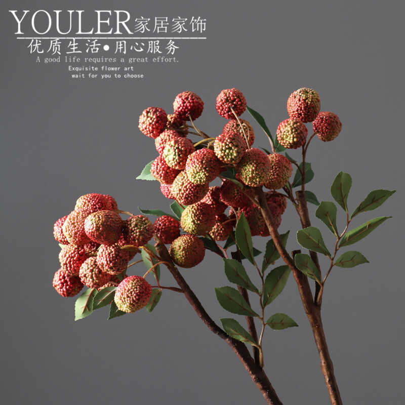 中式仿真荔枝浆果果实枝条植物插花艺术装饰田园家居客厅橱窗摆件