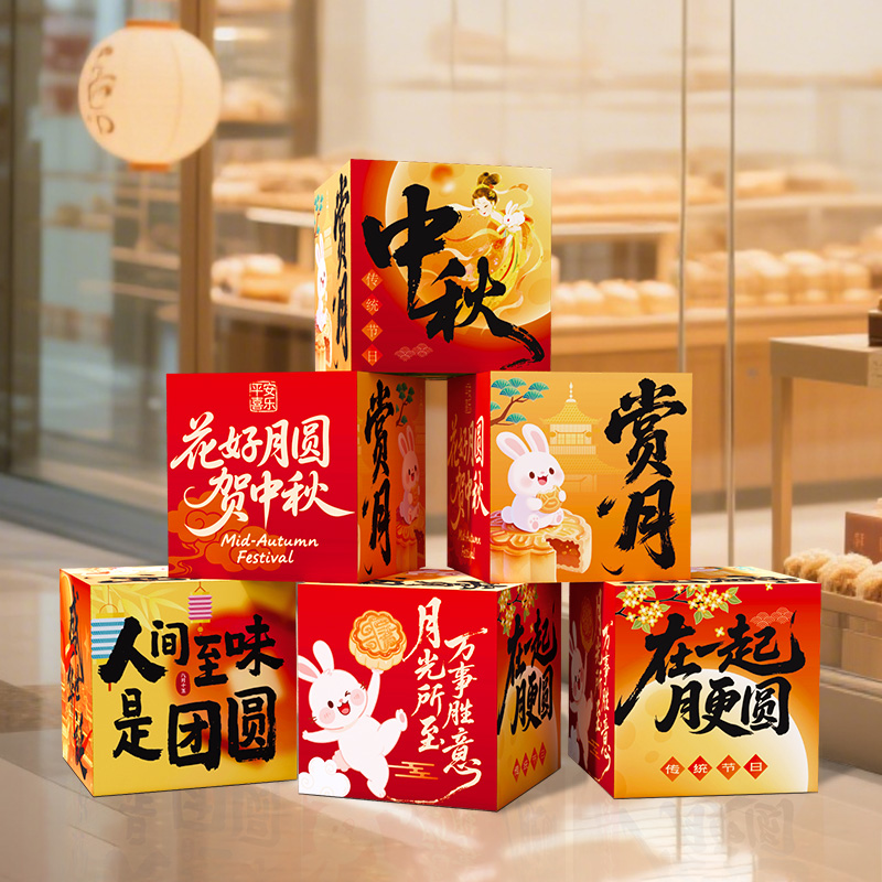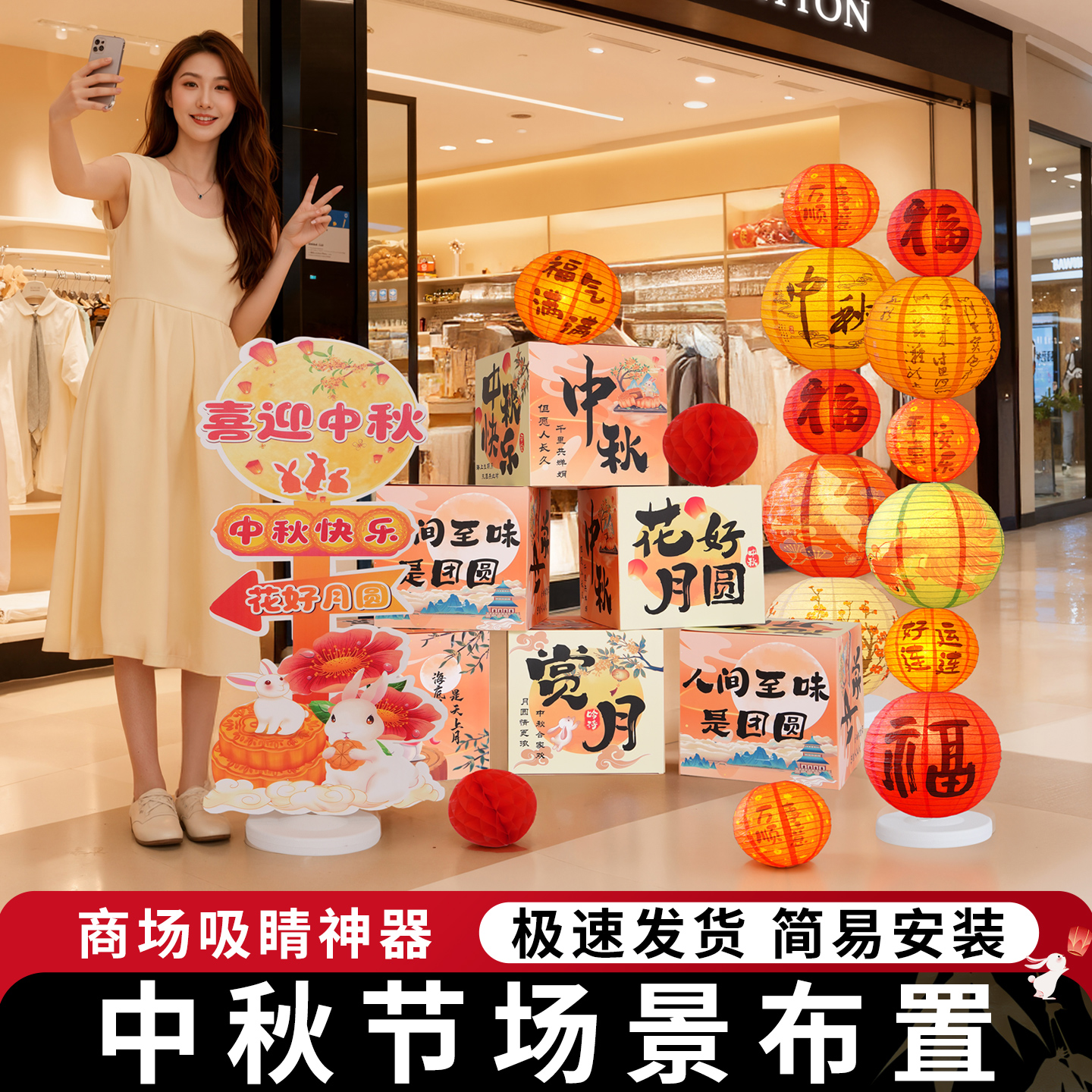 中秋节场景布置氛围装饰商场店铺活动地堆盒道具橱窗摆件挂布条幅