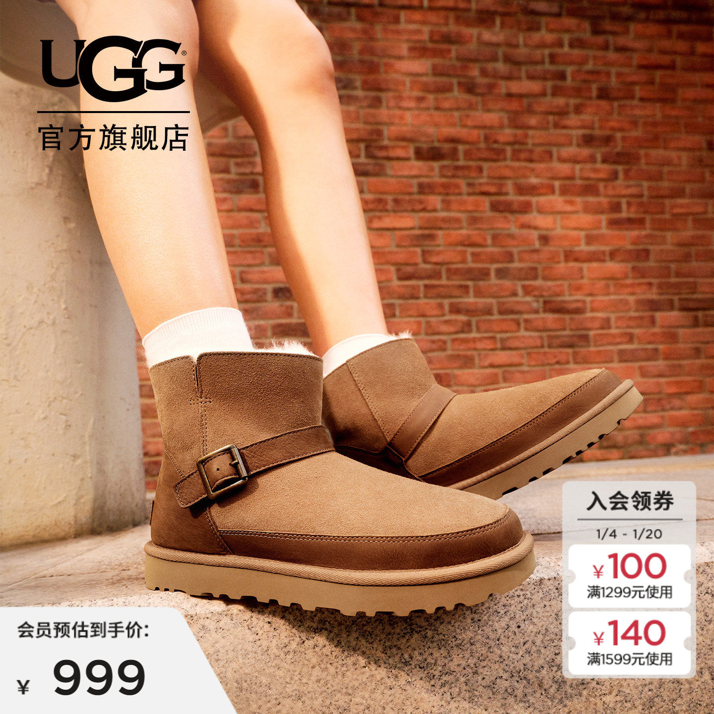 UGG秋冬新款女士舒适保暖搭扣平底休闲经典迷你短筒雪地靴1174512