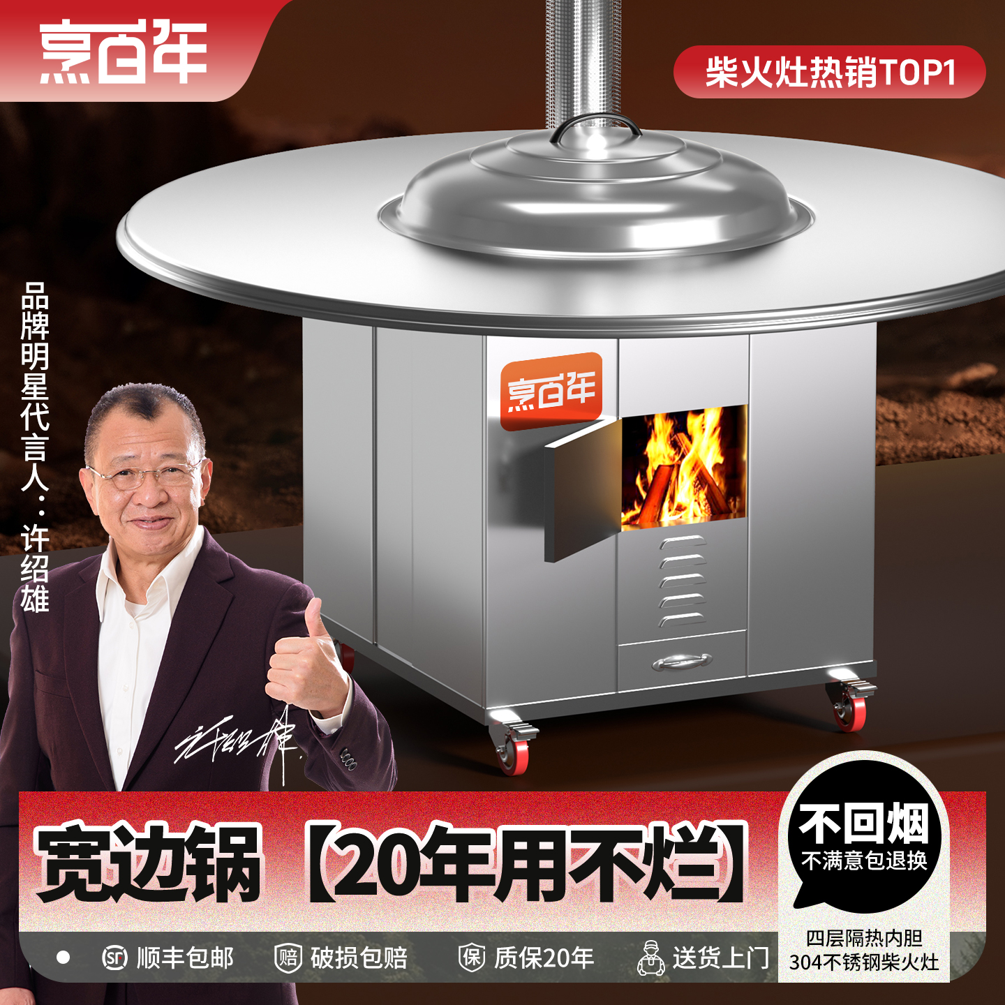 新型农村不锈钢移动柴火灶家用烧木柴室内无烟大锅灶台户外柴火炉
