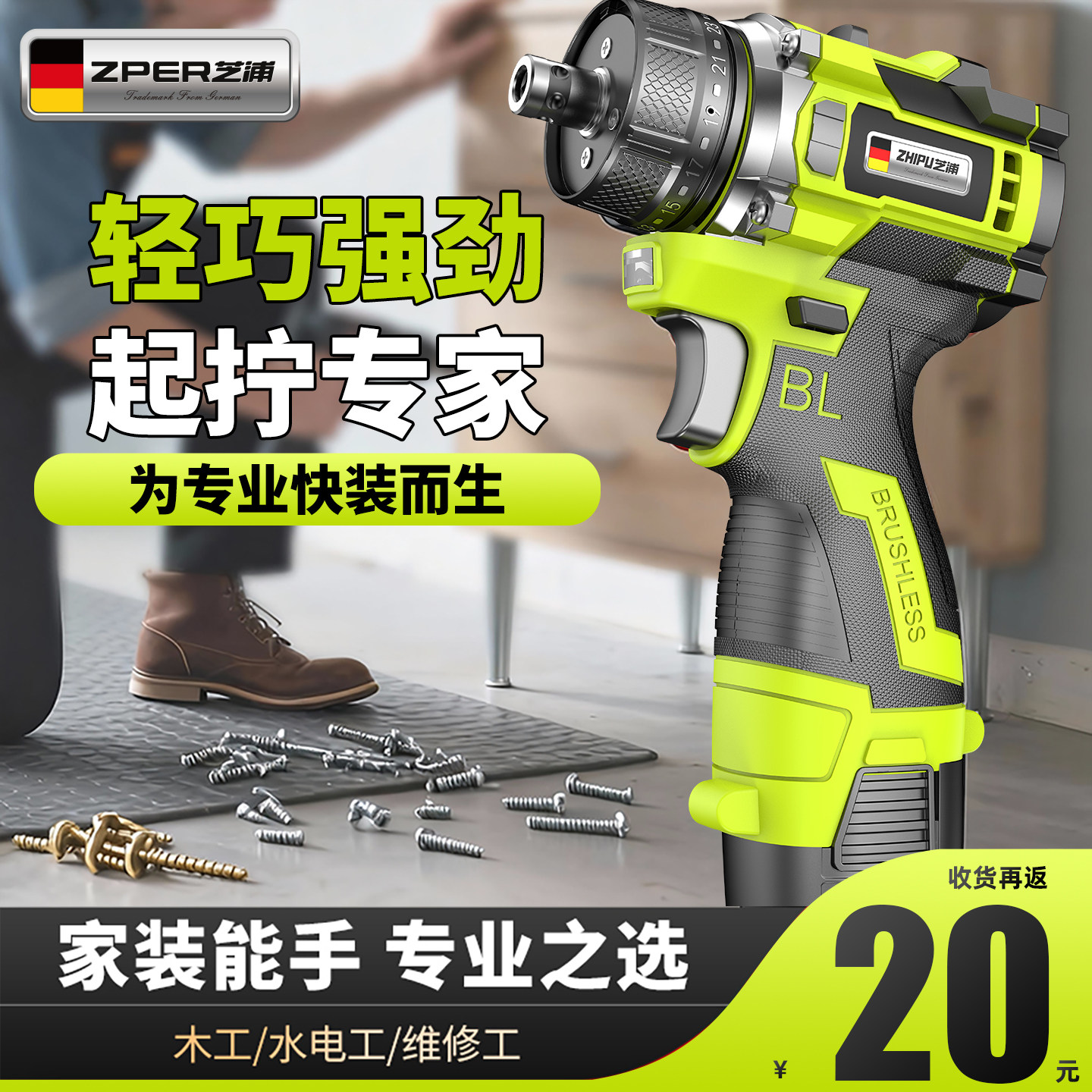 德国芝浦12V锂电钻多功能家用手枪钻电动螺丝刀充电式电起子电转