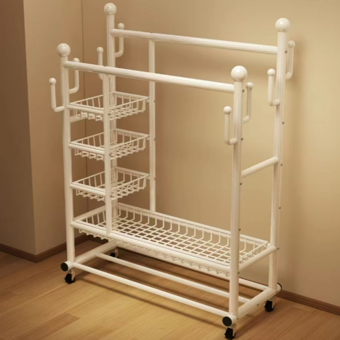 大学生卧室落地挂衣架宿舍奶油风可移动带轮家用简易阳台衣帽架子