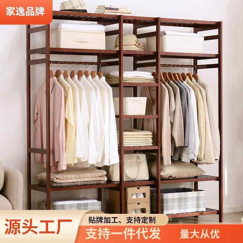 无即所有日式落地实木衣帽架卧室开放衣柜玄关收纳不锈钢挂衣架子