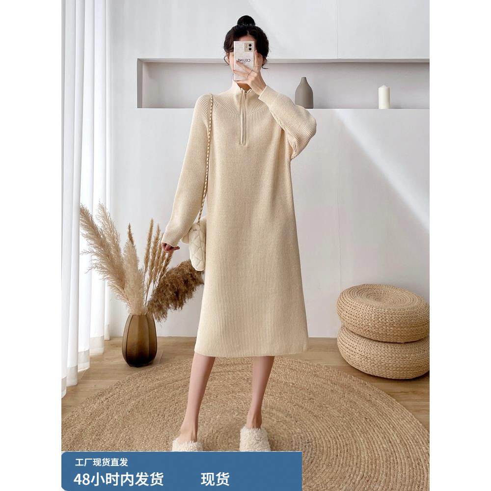 加厚毛衣裙女冬裙小个子秋冬宽松显瘦打底羊毛裙子过膝针织连衣裙