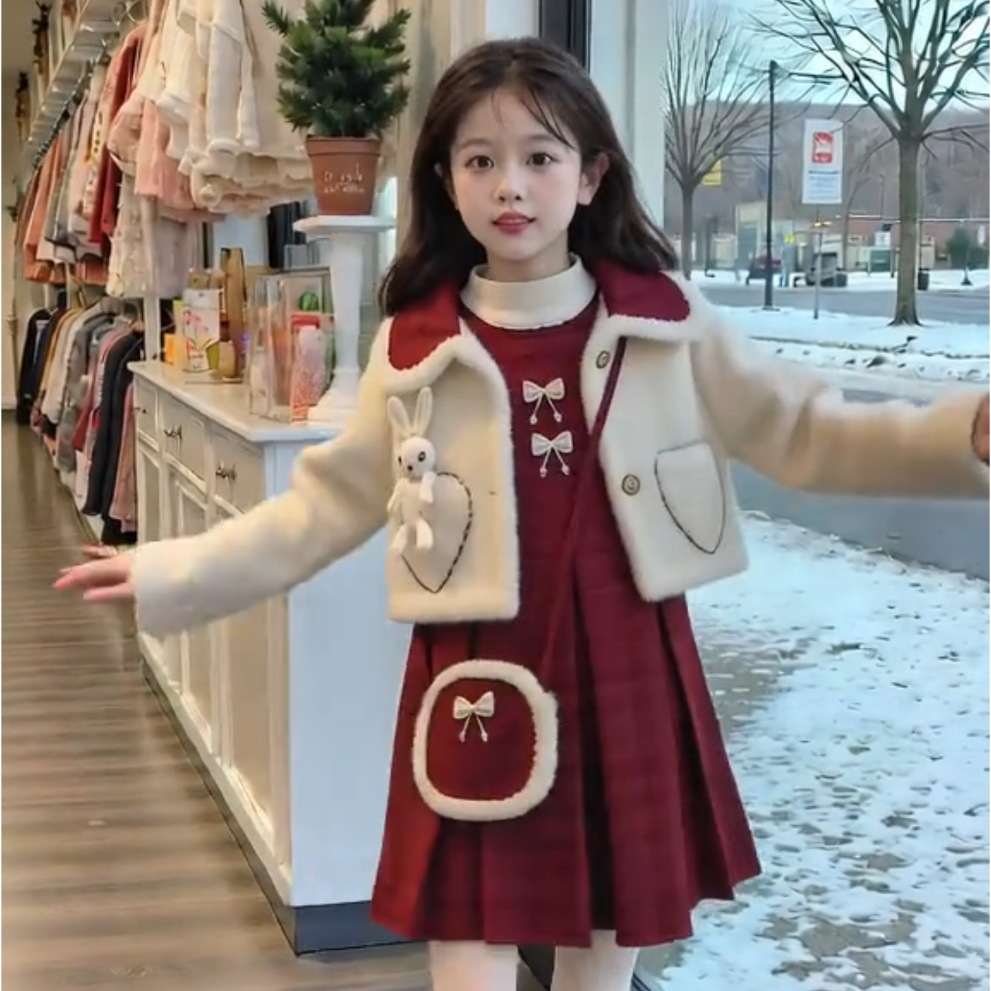 女童超好看冬裙厚款2025新款儿童红色连衣裙冬装女大童拜年服套装