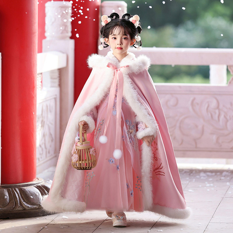女童冬季夹棉加厚斗篷连衣裙套装2025新款韩版洋气女大童秋冬裙子