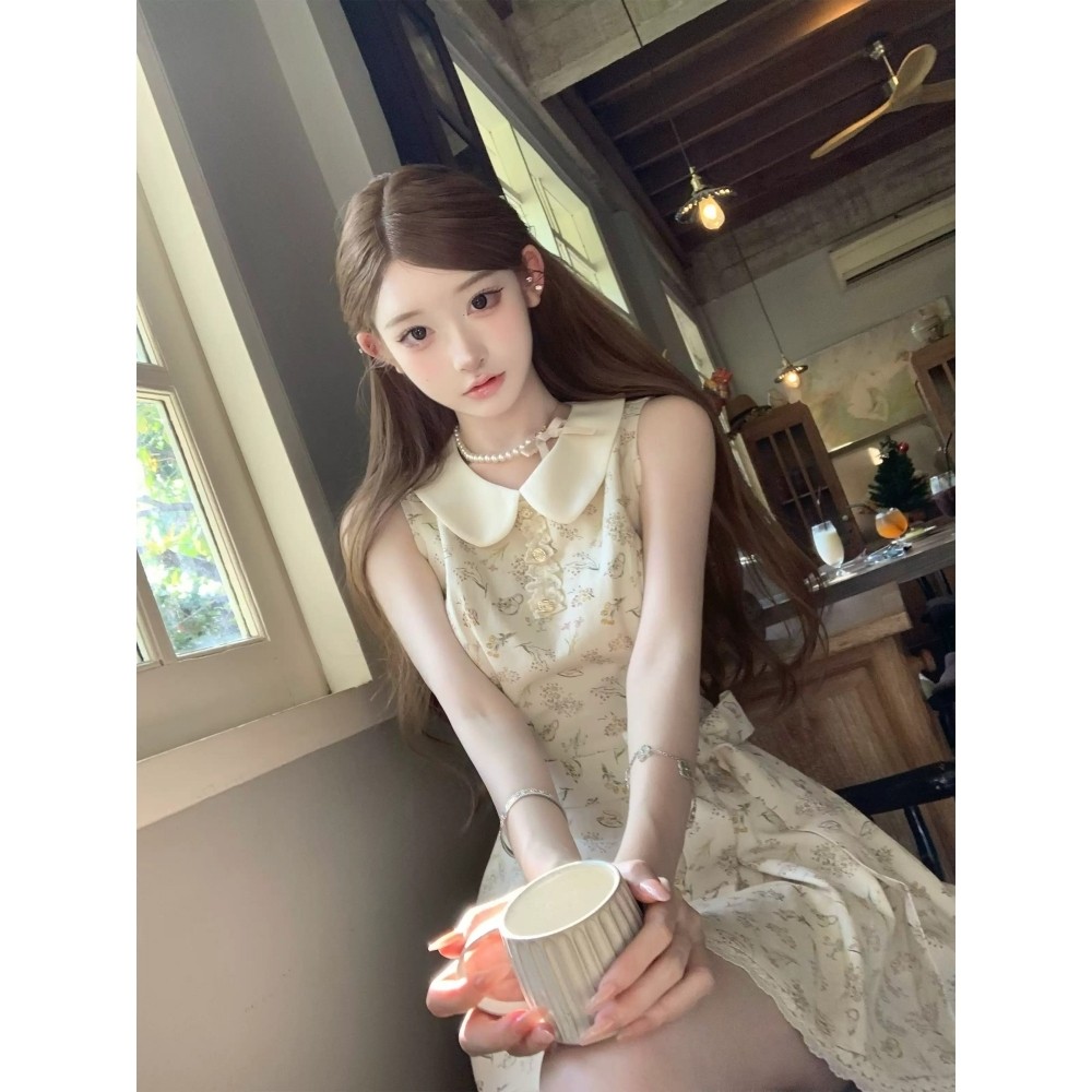2025新款法式千金风无袖碎花连衣裙女春夏娃娃领A字短裙公主裙子