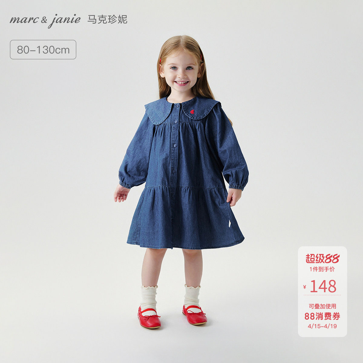 马克珍妮女童娃娃领牛仔连衣裙宝宝裙子儿童A字裙春装新款241056