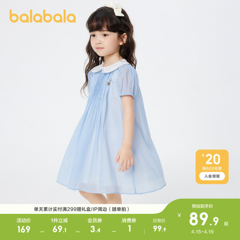 巴拉巴拉童装儿童女童裙子新款夏装娃娃领压褶A字小童宝宝连衣裙