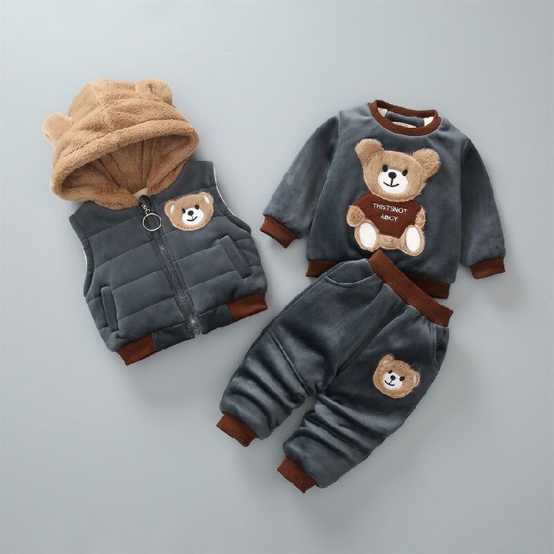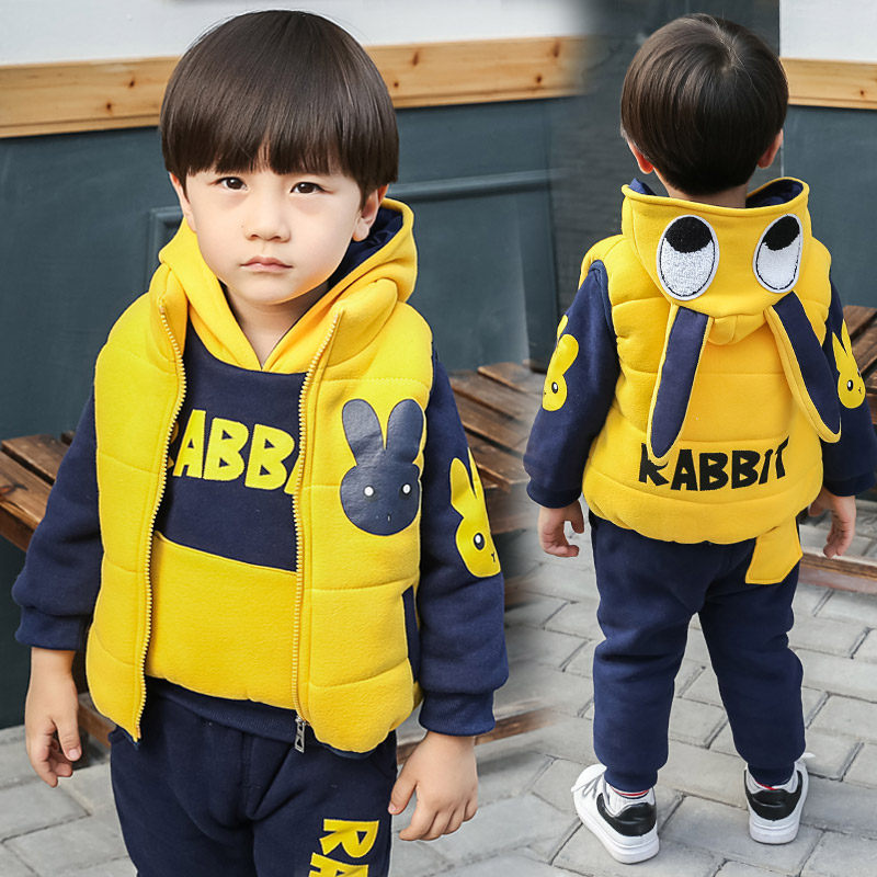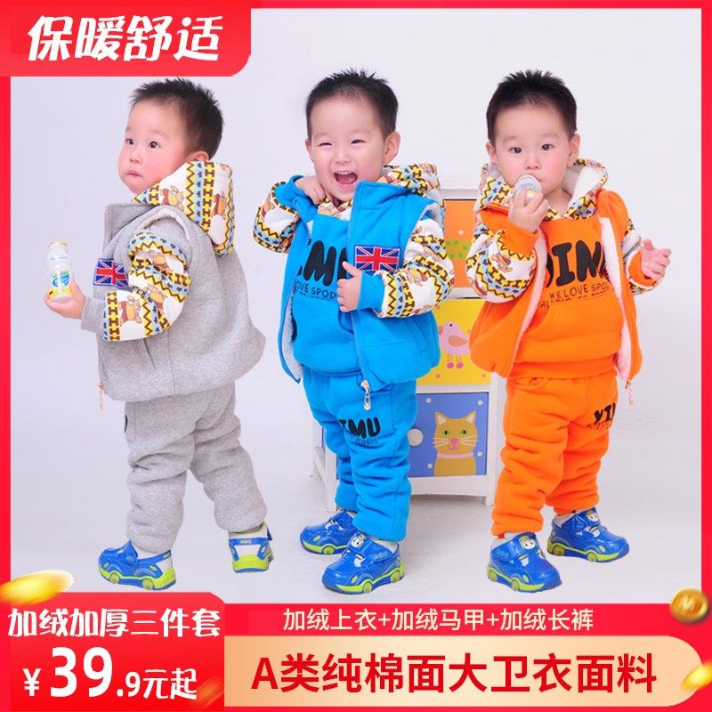 秋冬款加绒加厚三件套装婴儿童装卫衣男童女宝宝1-3岁4冬装外套潮