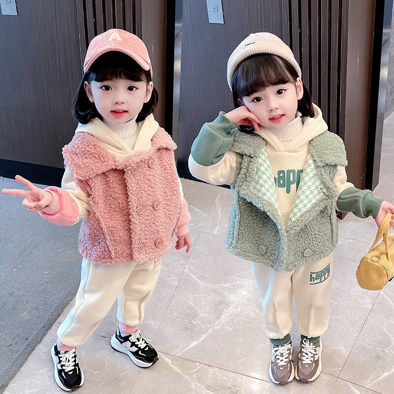 女童马甲加绒卫衣三件套装冬季2026新款儿童秋冬装小女孩宝宝加厚