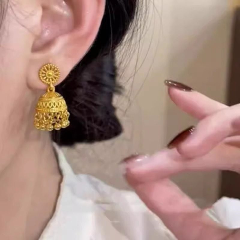 新中式国风阁楼宫灯耳钩结婚耳饰黄金色宫廷风高级感越南沙金耳环