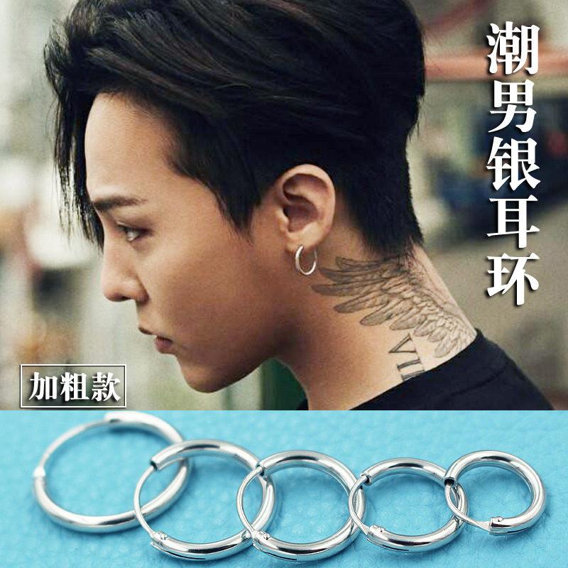 韩版时尚GD同款圆耳圈嘻哈耳环男单只925纯银潮流个性男款耳钉女