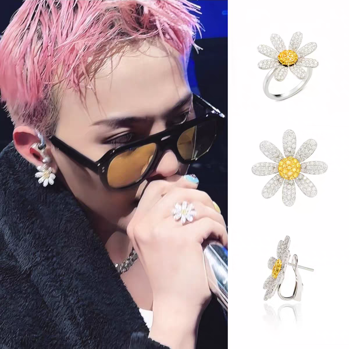 GD权志龙同款满钻雏菊戒指耳钉套装男女小众百搭向日葵耳环手饰品