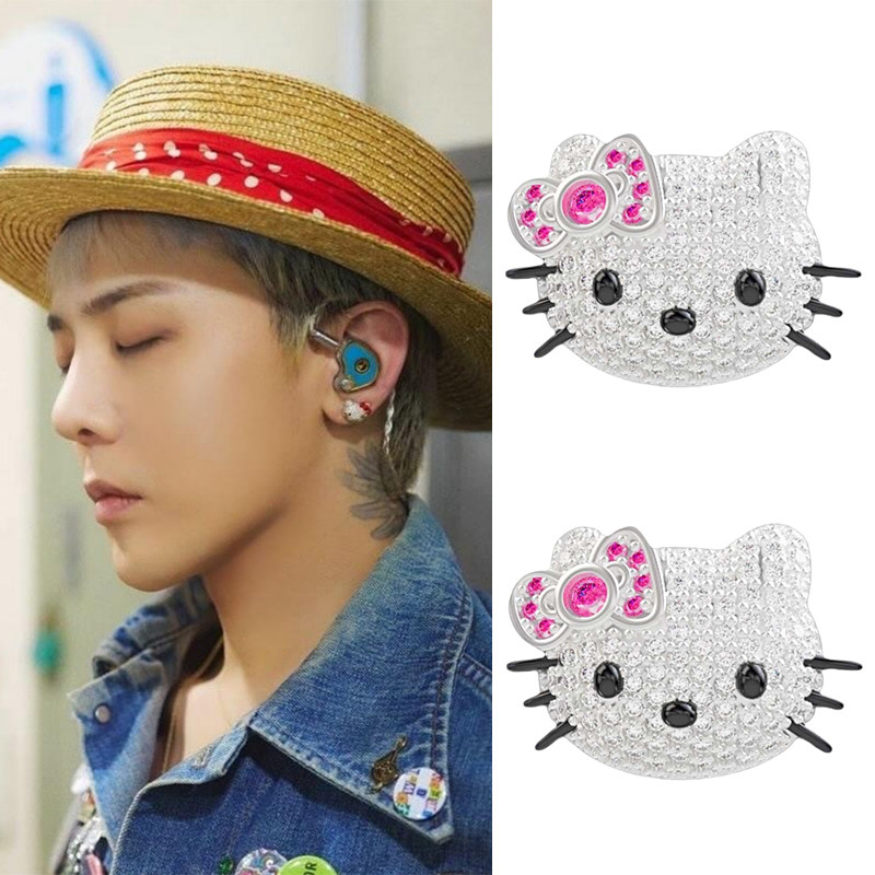 GD权志龙同款HelloKitty凯蒂猫耳钉女简约个性百搭小众耳环耳饰