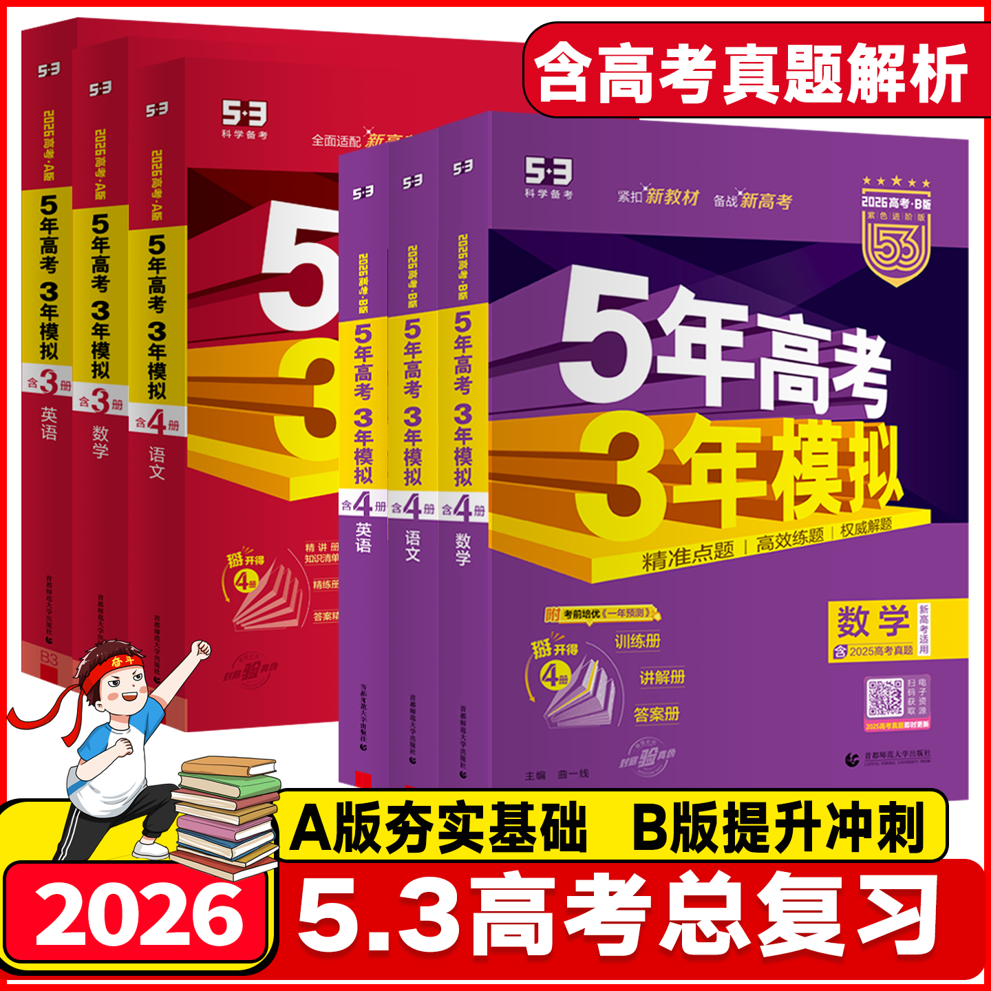 曲一线2026五年高考三年模拟B版A版语文数学英语物理化学政治历史地理53新高考5年高考3年模拟理科五三真题卷试题高三一二轮总复习