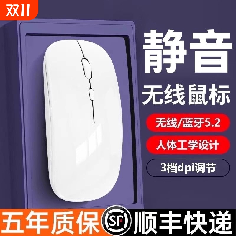【官方正品】无线鼠标充电款静音便携办公蓝牙双模5.0无声男女生无限滑鼠适用苹果mac笔记本电脑台式USB通用