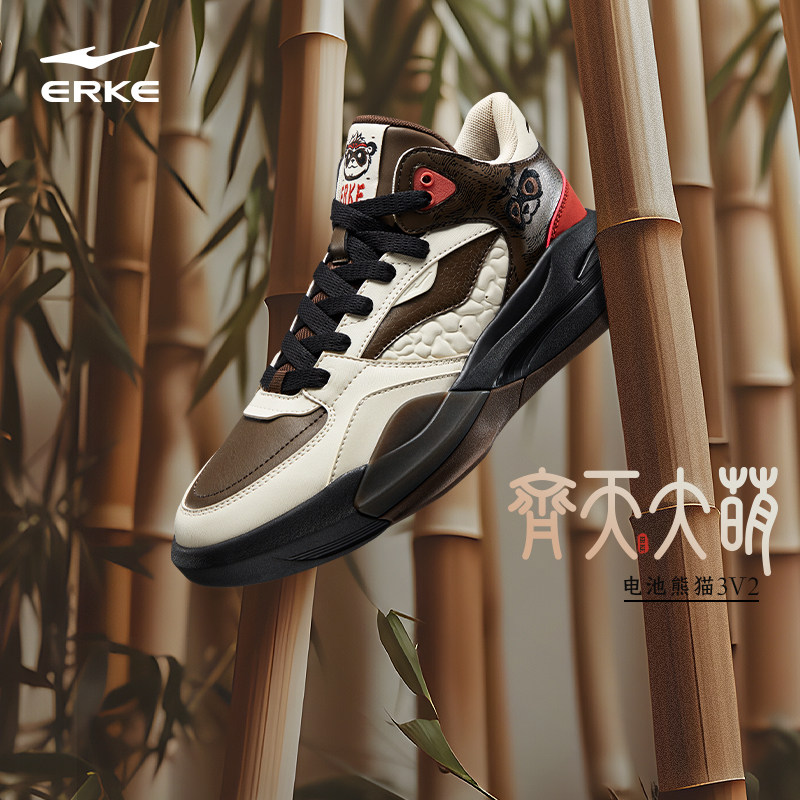 鸿星尔克高帮板鞋男 电池熊猫3V2秋季新款休闲运动鞋透气百搭男鞋