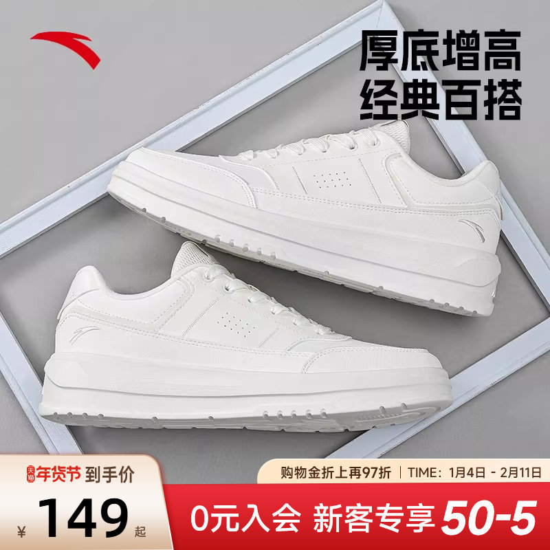 安踏A道丨低帮厚底增高板鞋男简约撞色小白鞋百搭男鞋112548026