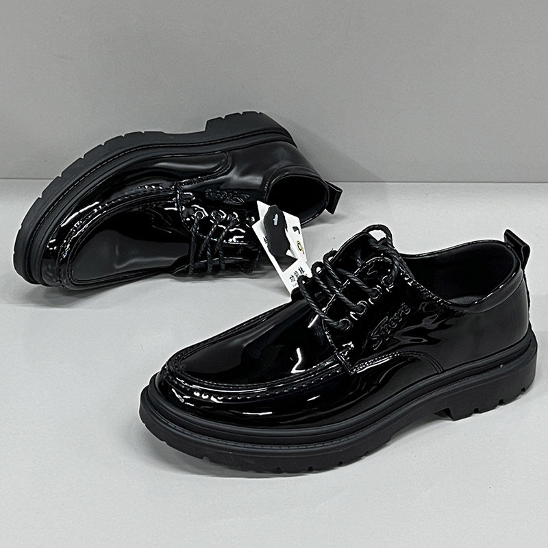 亮面厚底休闲皮鞋男商务百搭男鞋漆皮豆豆鞋男粗跟出差春秋休闲鞋