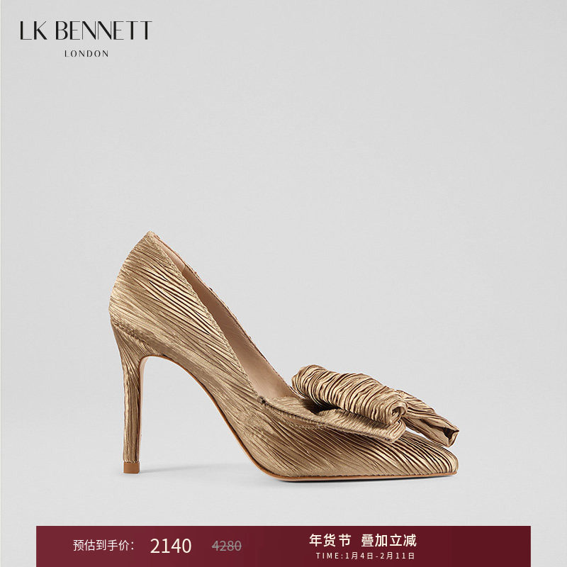 LK BENNETT金色尖头高跟鞋2025年秋冬10cm细跟蝴蝶结装饰宴会轻奢