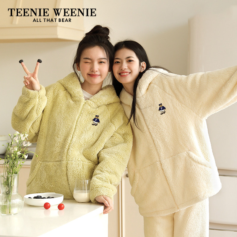 TeenieWeenie小熊秋冬睡衣女士双层北极绒套装加绒加带帽厚家居服
