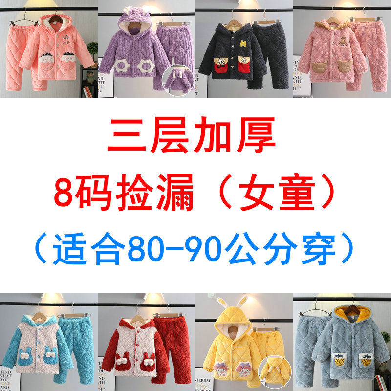 女童断码8码捡漏 冬季儿童睡衣三层加厚夹棉带帽中小童家居服套装