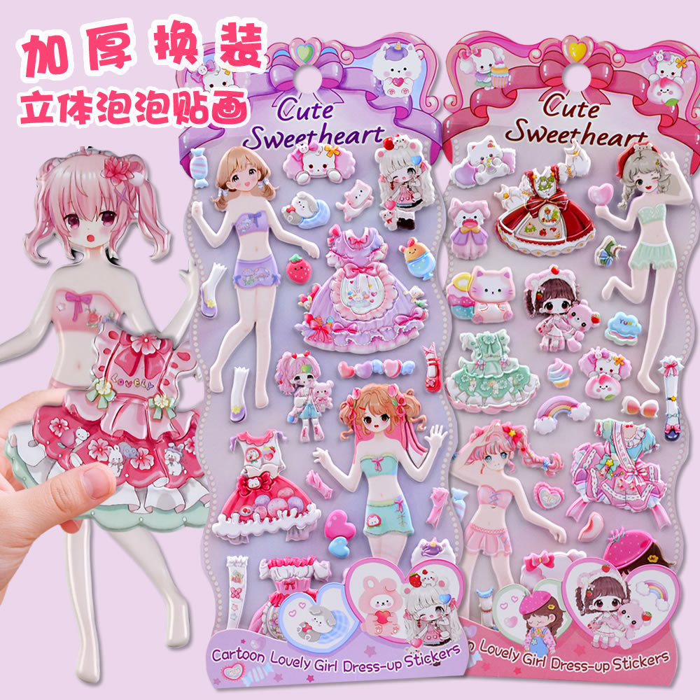 女孩换装立体泡泡贴纸芭比娃娃换衣服小公主儿童过家家玩具粘贴画